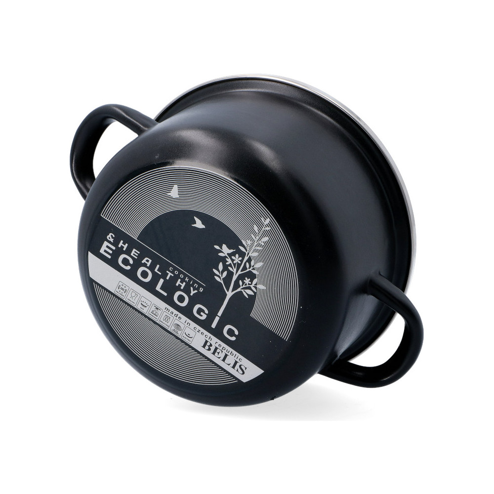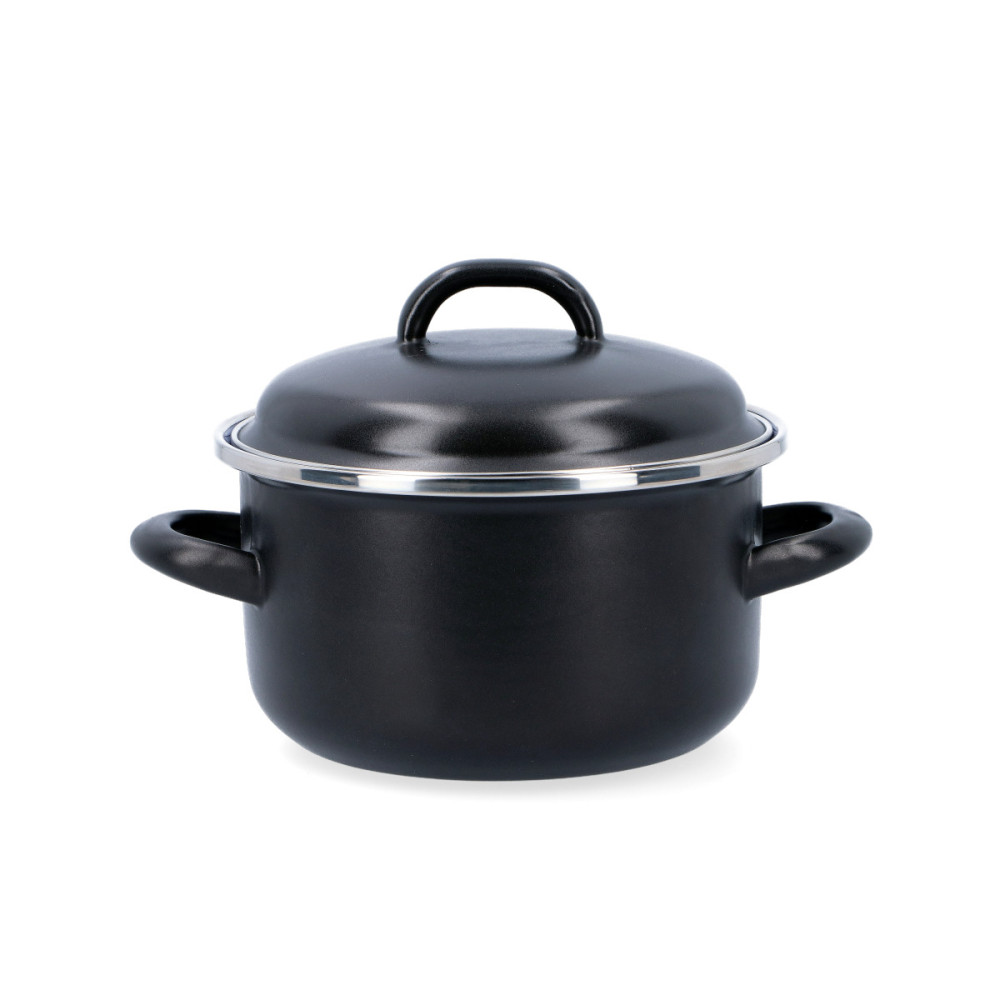 Garnek emaliowany 1,5 l z pokrywką Lux czarny 16 cm Belis