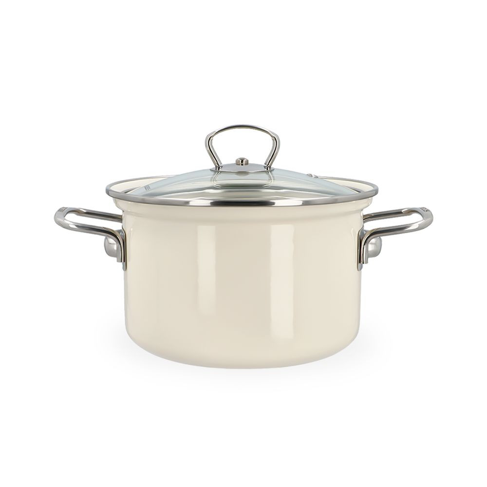 Garnek emaliowany 6,1 l z pokrywką Eco-Ceramic 24 cm kremowy Belis