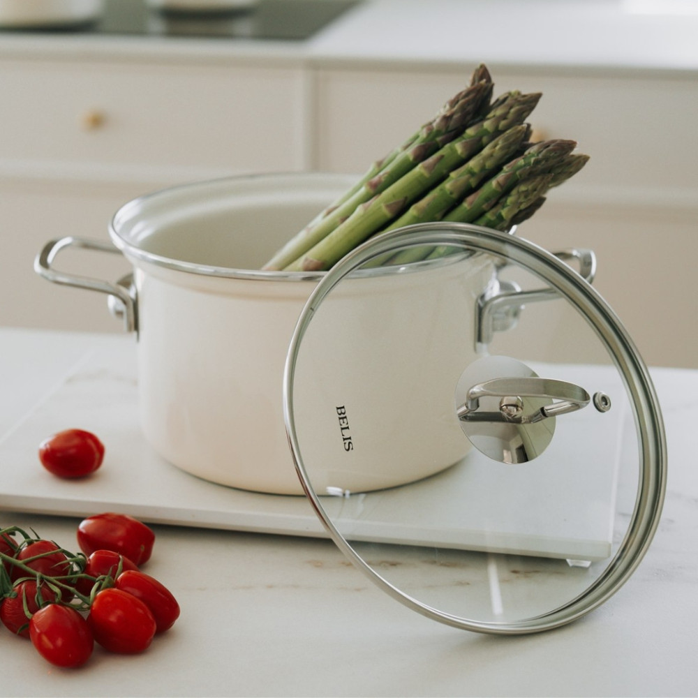 Garnek emaliowany 6,1 l z pokrywką ECO-CERAMIC cream 24 cm Belis